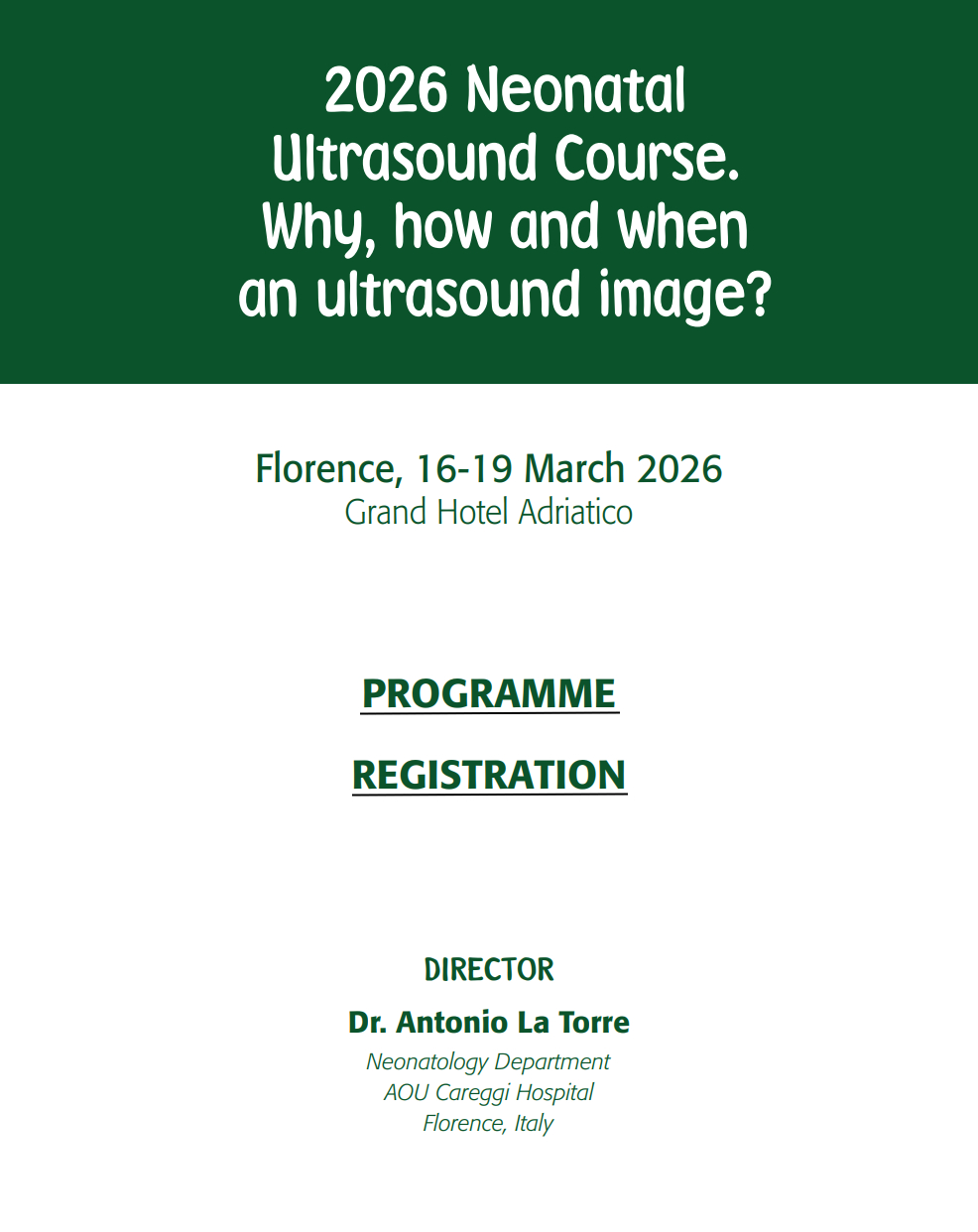 2026 Neonatal Ultrasound Course. Why, how and when an ultrasound image? Florence, 16-19 March, 2026 |